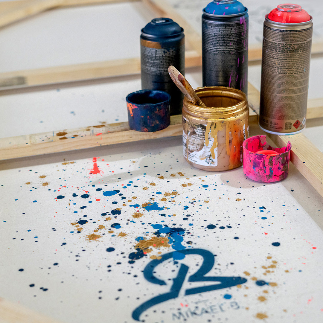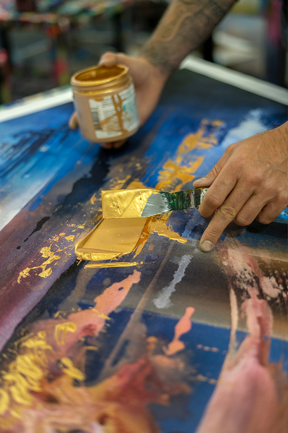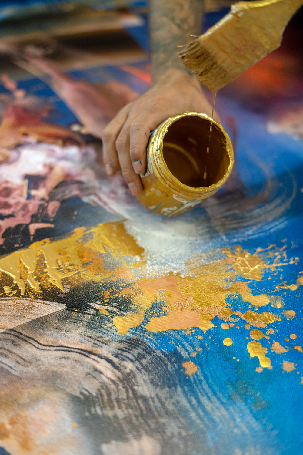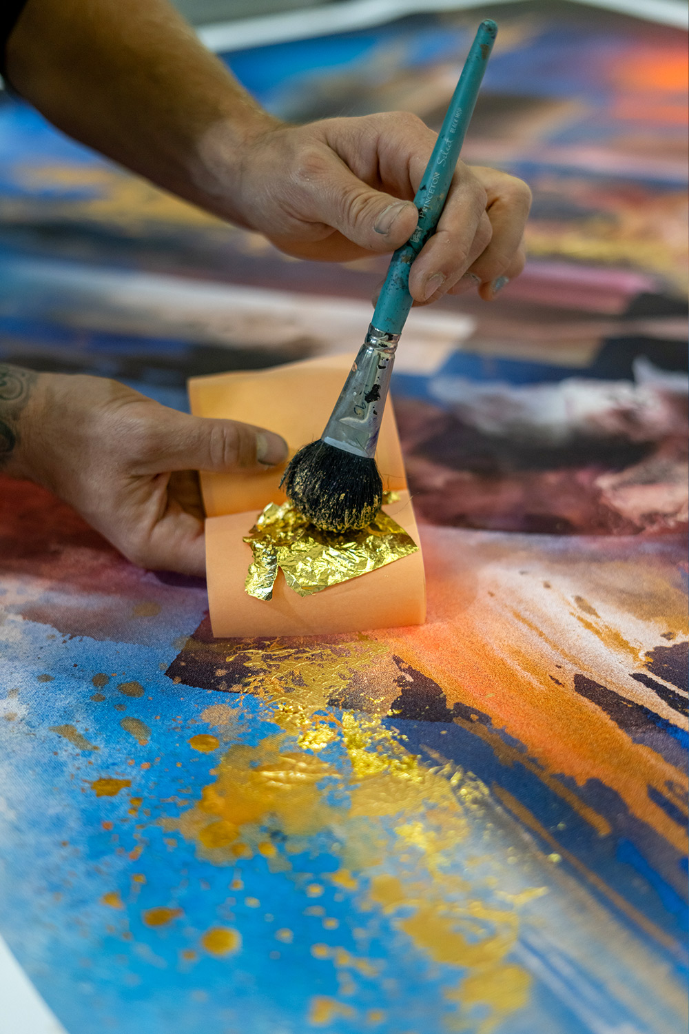 - Individually hand-painted with acrylic, spray paint, and 24K gold leaf.